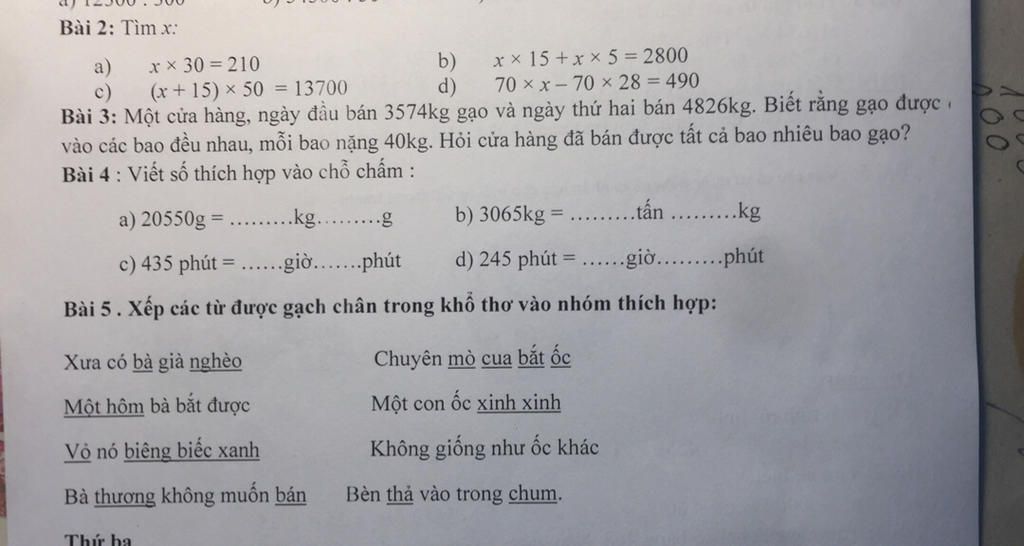 (3574÷40) + (4826÷40) = 210( bao gạo )