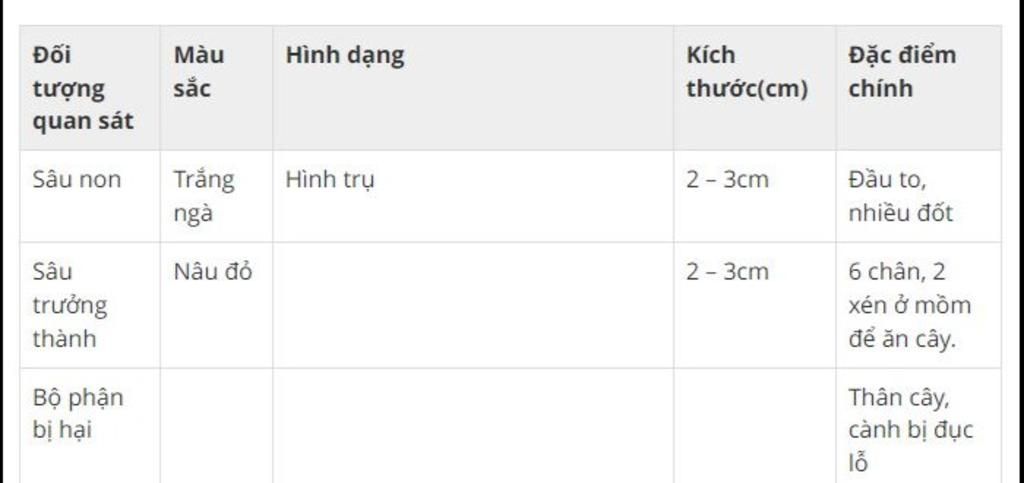 Lập bảng về ''đặc điểm hình thái của sâu hại cây ăn quả'' như bảng dưới mình cần >2 đối tượng nữa ạ mai cô kiểm tra rồi