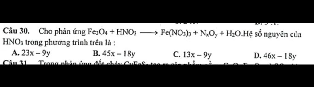 Vậy hệ số của $HNO_3: (46x-18y)$ Chọn $D$