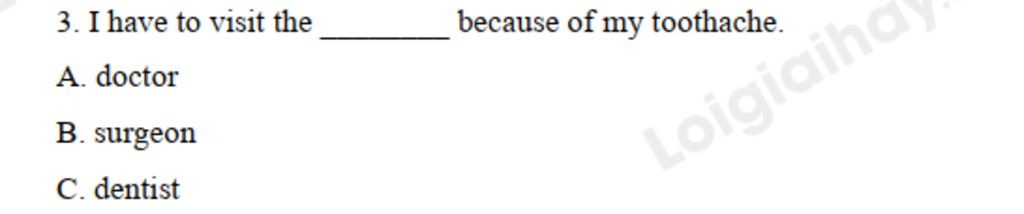 - Dựa vào "toothache" -> Bị đau răng -> Cần đi nha sĩ