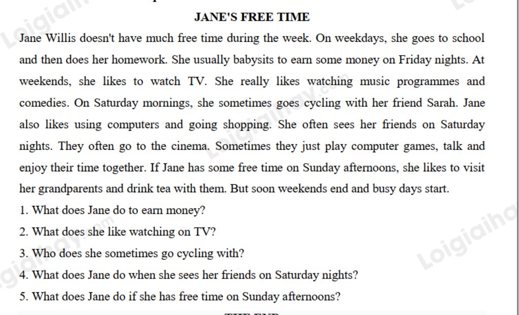 `-` Thông tin: If Jane has some free time on Sunday afternoons, she likes to visit her grandparents and drink tea with them.