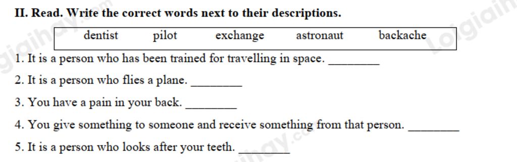 `1,`It is a person who has been trained for travelling in space. `⇒` Astronaut: phi hành gia