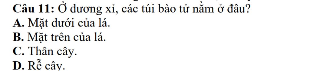 `->``bbA`$\\$`1` phần lá nhìn ở mặt dưới có các đốm chứa túi bào tử