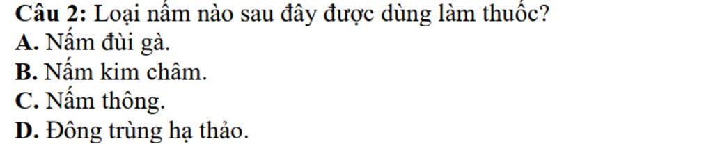 `=>`Chọn `D.` Đông trùng hạ thảo.