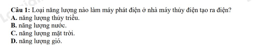 Vì thủy điện có rất nhiều nước với sức nước rất mạnh nên điện sẽ được tạo ra bằng năng lượng nước
