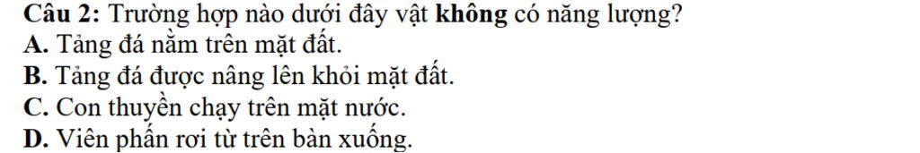 Câu 2: Trường hợp nào dưới đây vật không có năng lượng?