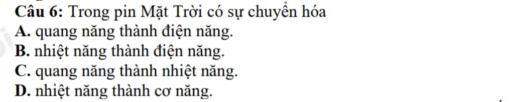 `-` Vì : Trong pin mặt trời có sự chuyển hóa từ quang năng thành điện năng.