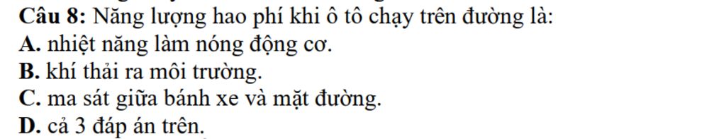 Vì năng lượng hao phí khi ô tô chạy trên đường là:
