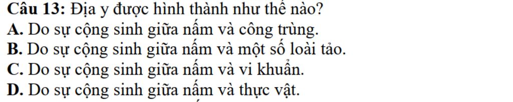 `-`Địa y được tạo nên do sự cộng sinh giữa nấm và một số loài tảo