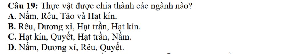 `D.` Nấm, Dương xỉ, Rêu, Quyết.