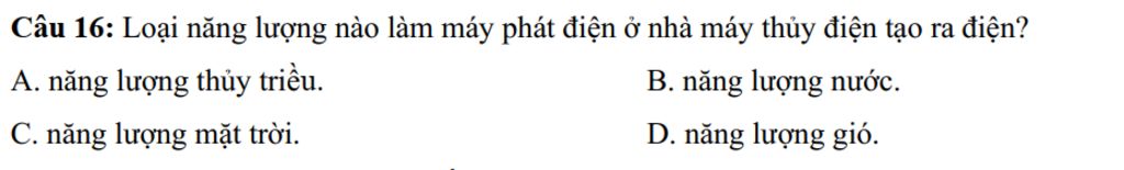Giải thích: Ở nhà máy thủy điện có rất nhiều nước, nhờ sức nước chảy mà tạo được ra điện `=>` Năng lượng nước