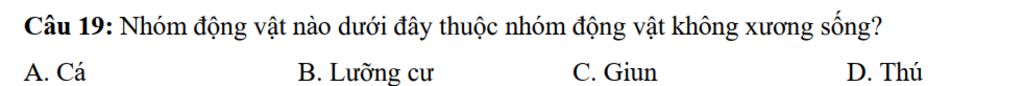 Nhóm động vật không xương sống gồm: ruột khoang, giun, thân mềm, chân khớp. Trong số đó có giun