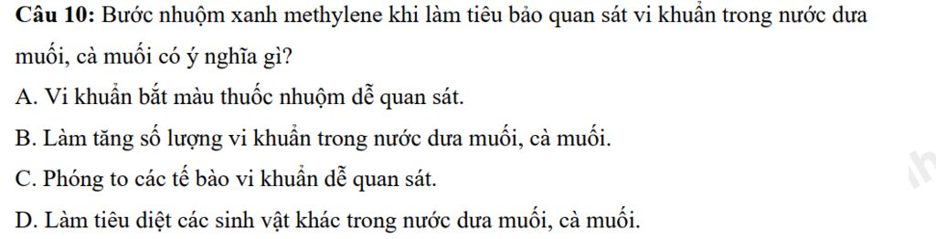`->``bbA`$\\$Xanh methylene là một hợp chất có màu xanh có tác dụng để nhuộm màu vi khuẩn giúp dễ quan sát chúng dưới kính hiển vi