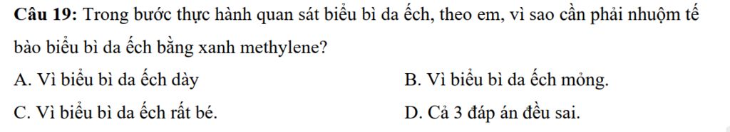 ⇒ Cần phải nhuộm tế bào biểu bì da ếch bằng xanh methylene vì biểu bì da ếch mỏng.