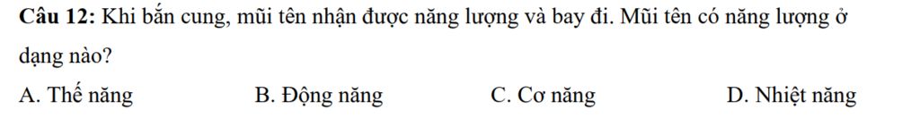Vì khi bắn cung , mũi tên chuyển đổi năng lượng từ cơ năng `->` động năng .