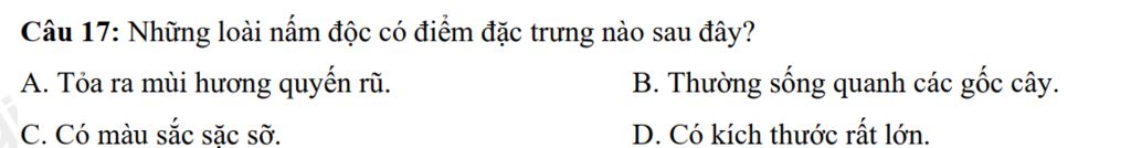 `-` Những loài nấm độc có điểm đặc trưng : có màu sắc sặc sỡ.