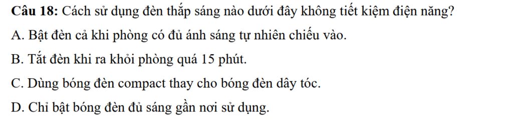`-` Khi phòng đã có đủ ánh sáng tự nhiên, việc bật thêm đèn là không cần thiết và dẫn đến lãng phí năng lượng.