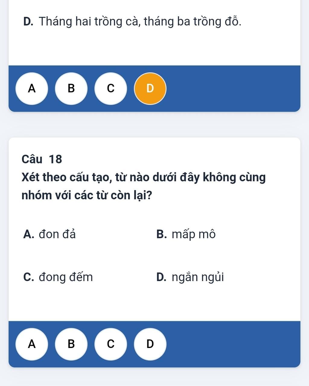C. → Đong đếm là từ ghép , vì cả hai từ đều có nghĩa ←