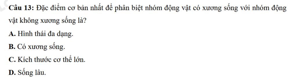 Động vật có xương sống có bộ xương trong, trong đó có xương sống (hay cột sống) ở dọc lưng, Trong khi đó thì động vật không xương sống lại không có xương sống