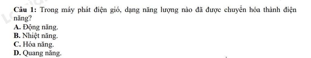 `->``bbA`$\\$Trong máy phát điện gió cơ năng đã được chuyển hóa thành điện năng