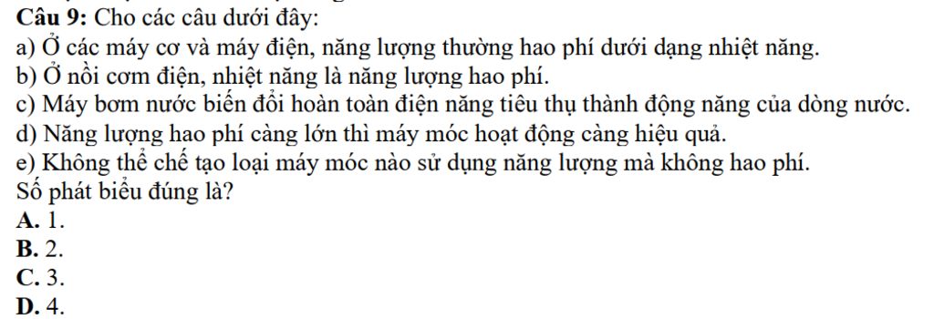 `-` Câu e đúng vì chế tạo loại máy móc nào cũng phải sử dụng năng lượng hao phí ( áp dụng định luật bảo toàn năng lượng).