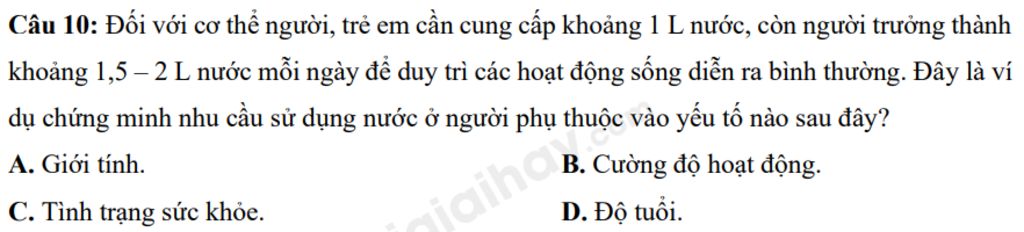 Vì : ví dụ trên cho thấy nhu cầu sử dụng nước tăng lên dần dần từ độ tuổi trẻ em đến độ tuổi trưởng thành