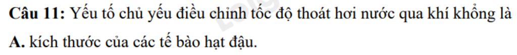 →Hoạt động đóng, mở của khí khổng có vai trò điều chỉnh tốc độ thoát hơi nước qua khí khổng. Mà nguyên nhân chủ yếu khiến cho khí khổng đóng hay mở chính là độ trương nước của tế bào hạt đậu. Bởi vậy, yếu tố chủ yếu điều chỉnh tốc độ thoát hơi nước qua khí khổng là độ trương nước của tế bào hạt đậu.