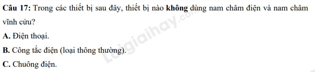 Câu 17: Trong các thiết bị sau đây, thiết bị nào không dùng nam châm điện và nam châm vĩnh cửu?