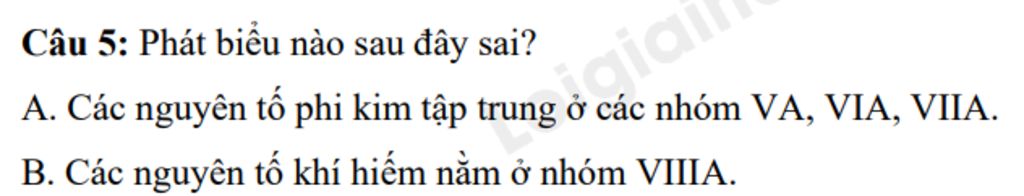 `A.` Các nguyên tố phi kim tập trung ở các nhóm `VA, VIA, VIIA.`