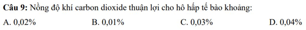 Nồng độ khí carbon dioxide thuận lợi cho hô hấp tế bào khoảng: 0,03 % (bằng hàm lượng carbon dioxide trong không khí)
