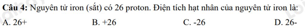 Vì trong nguyên tử iron có 26 hạt proton nên mang điện tích hạt nhân dương là +26