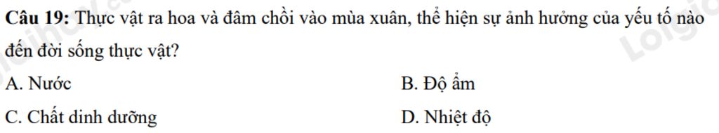 Thực vật ra hoa và đâm chồi vào mùa xuân, thể hiện sự ảnh hưởng của yếu tố nào đến đời sống thực vật?
