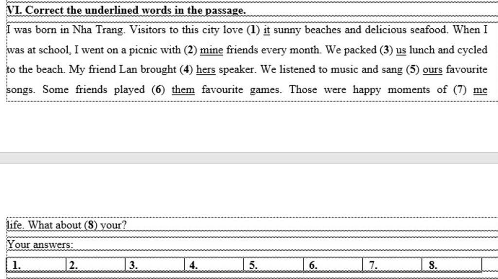 Đại từ sở hữu (mine, yours, his, hers, ours, theirs, its)