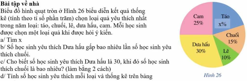 `b)` Số học sinh yêu thích Dưa gấp chuối là: