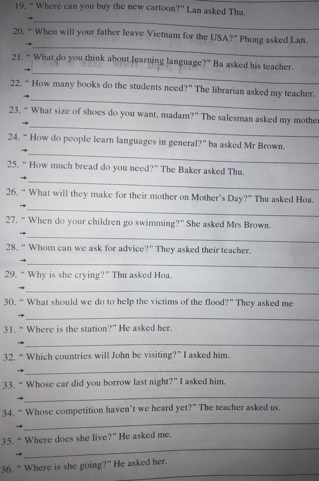 22. The librarian asked my teacher how many books the students needed.