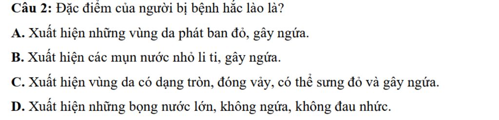 Câu 2: Đặc điểm của người bị bệnh hắc lào là?