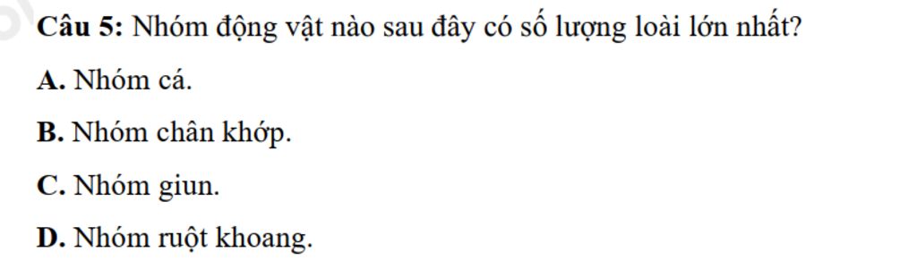 →Nhóm chân khớp là nhóm có số lượng loài lớn nhất trong số các ngành động vật. Chúng có hơn một triệu loài, chiếm 80% tổng số các loài trên Trái Đất.