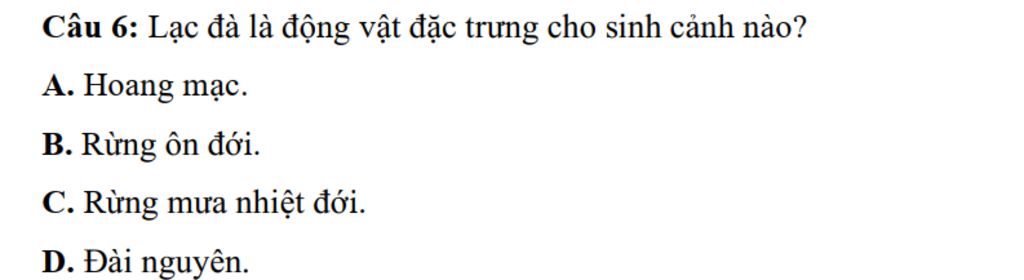 `->``bbA`$\\$Lạc đà là động vật đặc trưng cho sinh cảnh hoang mạc