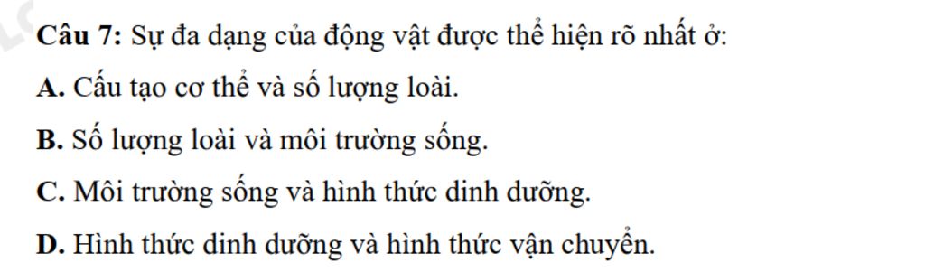 Môi trường sống và số lượng loài là 2 yếu tố chính thế hiện rõ nhất sự đa dạng của các loài động vật.