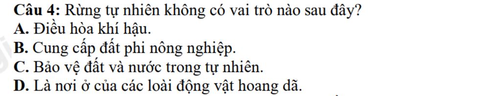 Đáp án : `B`.Cung cấp đất phi nông nghiệp