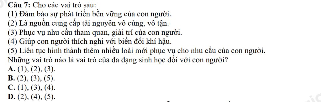 `-` Những vai trò của đa dạng sinh học đối với con người như :