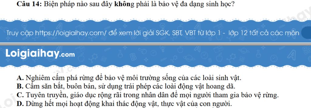 Biện pháp nào sau đây không phải là bảo vệ đa dạng sinh học?