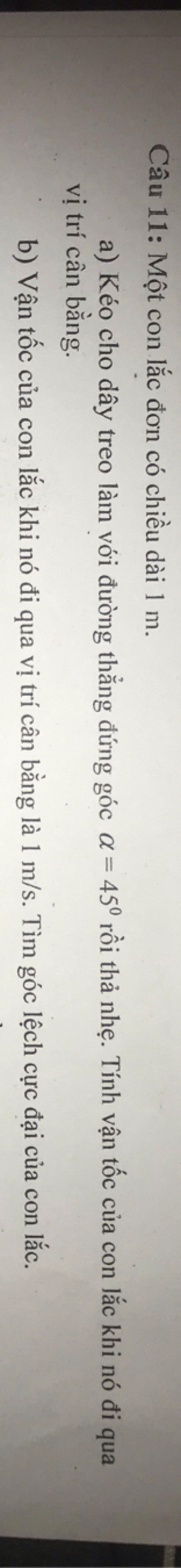 Khi vận tốc của con lắc khi đi qua vị trí cân bằng bằng $1m/s$: