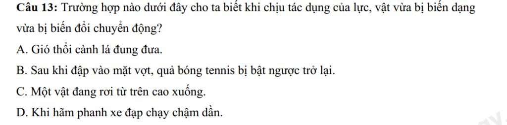 Sau khi đập vào mặt vợt, quả bóng tennis bị bật ngược trở lại cho ta biết khi chịu tác dụng của lực vật vừa bị biến dạng vừa bị biến đổi chuyển động