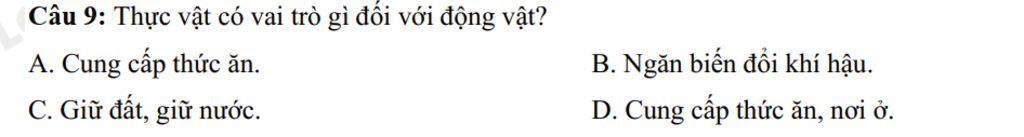 `->``bbD`$\\$Thực vật cung cấp thức ăn, nơi ở cho động vật