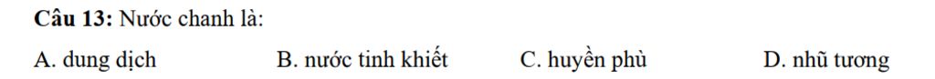 Sau khi pha xong, ta sẽ thấy các hạt (chất rắn) lơ lửng trong nước chanh `=>` Nước chanh là huyền phù