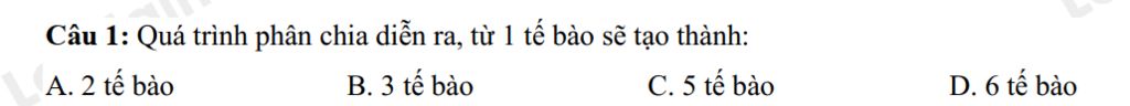 Câu `1:` Quá trình phân chia diễn ra, từ `1` tế bào sẽ tạo thành `:`