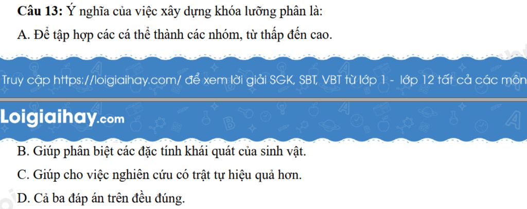 `B.` Giúp phân biệt các đặc tính khái quát của sinh vật.