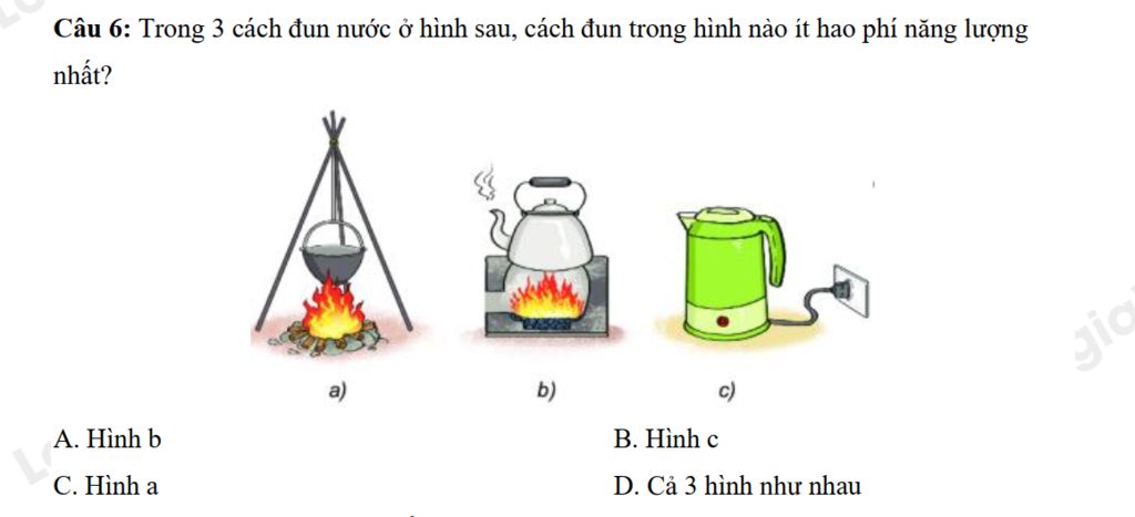 Vì Trong 3 cách đun nước ở hình sau, cách đun trong hình nào ít hao phí năng lượng nhất là hình c