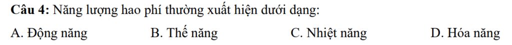 `@` Năng lượng hao phí thường xuất hiện dạng nhiệt năng.